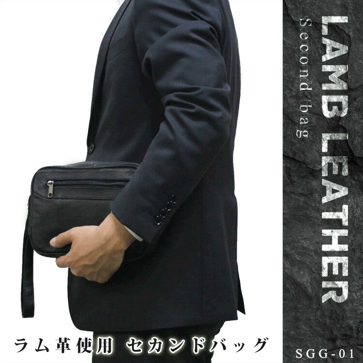 【即納】SGG-01 一部ラム革使用 セカンドバッグ シンプル セカンドバック セカンド バッグ メンズ 紳士 羊革 ラム革 ブラック 黒 あす楽 通販 プレゼント
