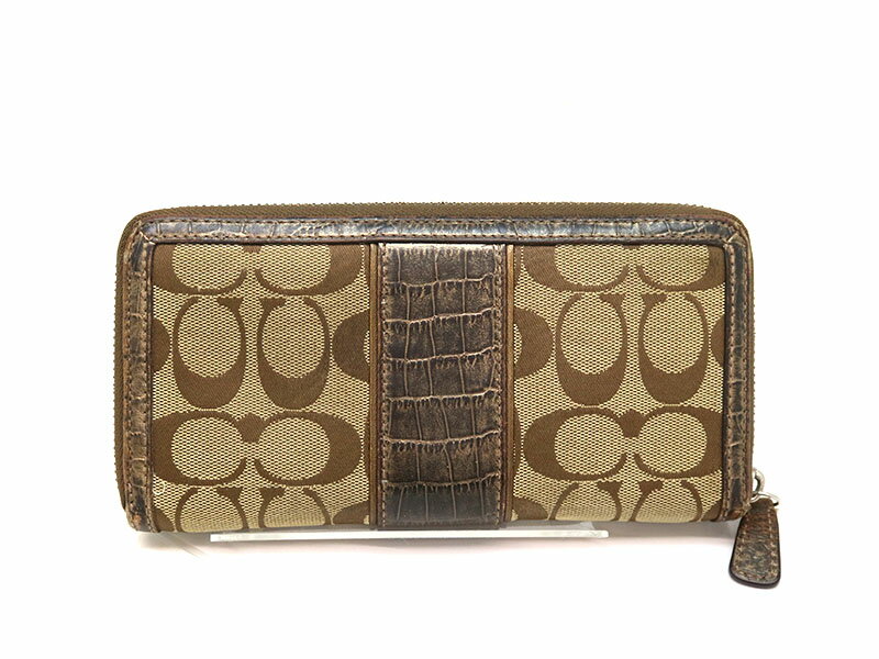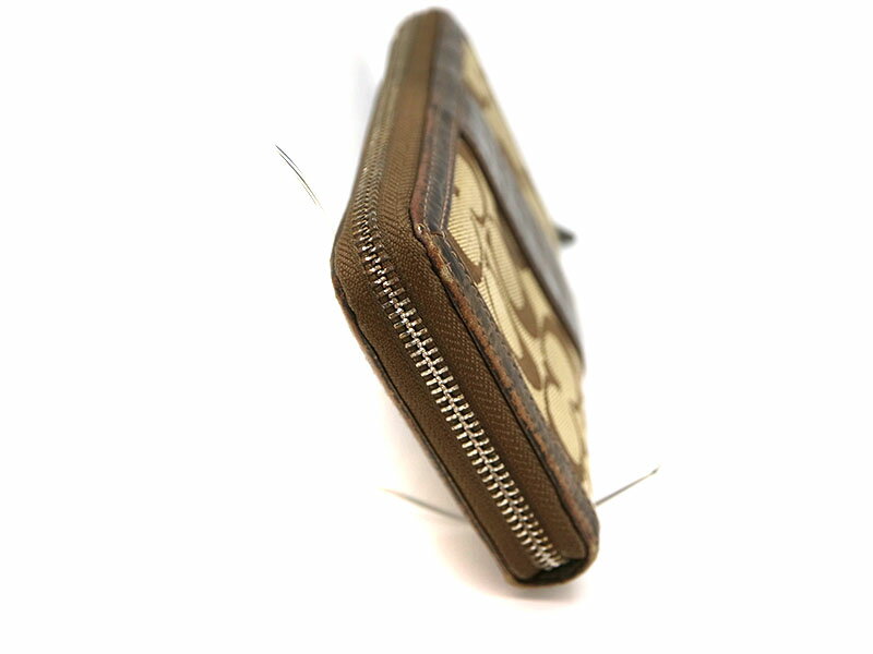 COACH【コーチ】 ラウンドファスナー財布 レザー×キャンバス ベージュ系 ブラウン系 財布 USED-4【中古】 a19-1036 質屋 かんてい局茜部店